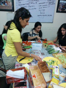 This is not how I expected my evening will turn out to be. We were doing an event in our office called Seva Sandwich. There were volunteers who came with loaves of bread, butter, jam, tomatoes and cucumber. There were some 10 of us huddled together. We were peeling cucumbers, spreading butter and jam on bread slices and packing the finished product nicely in aluminium foils ready to be distributed to people on the streets and shelter homes in Delhi who sometimes find it difficult to manage one square meal.