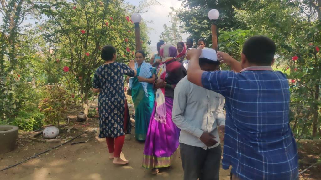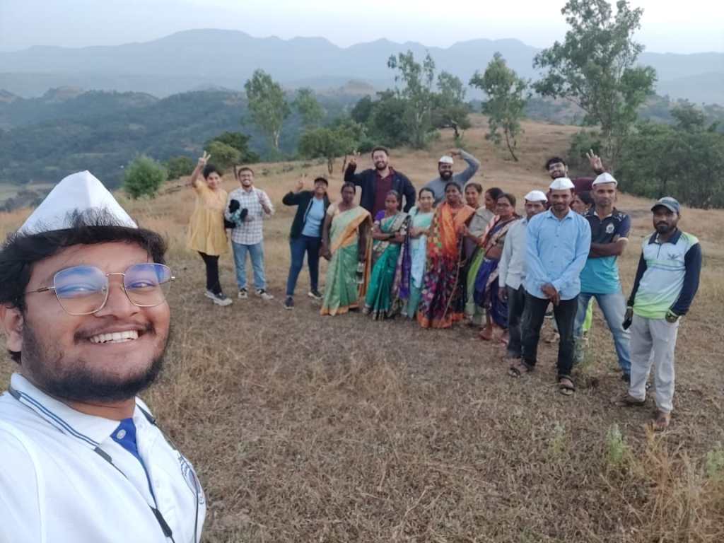 Our first stop was Purushwadi, nestled in the mountains of Sanhyadri, about 90 kilometers from Jawhar. The village welcomed us with breathtaking natural beauty, surrounded by tall peaks of the Western Ghats. This village is located in the area of Bhandardara, which is known for having the highest peaks of the Sanhyadri mountain ranges. Our guide, Datta bhaiyya, traditionally greeted us, performing an Arti and honoring us by gifting each of us a traditional Gandhi cap, which was the symbol of unity at the time of India’s freedom struggle. During our stay, we experienced various farm and village activities. Our guide showed and informed us about how they give information and instructions about these activities to the guests who come from the cities. As he was showing the traditional instruments and names of plants our team was getting bored. They were thinking that we knew this already and they were not finding it important. But they saw a group of people from the city who came to visit the Purushwadi and at the same time were enjoying all these activities they understood how interesting it can become for people who are new to this lifestyle. We stayed in different households and had different kinds of experiences. We enjoyed a bonfire at night after dinner. We also went for the sunset trek listening to the stories about the history of the village and the god goddess. We also enjoyed the food of the village. Some of us were satisfied with the taste and some were having critical remarks over cleanliness and the way of making. We also heard the stories of leopards coming to the village and attacking goats which frightened some of us. Datta bhaiyya also taught us how to stand a tent as they also arranged the tents for the guests. The next day morning a young boy Gorakh shared his knowledge of bamboo artifact-making and how our team can make similar products that would provide additional benefit in their project of rural tourism. Some of us also learned about their financial management practices and how they charge distribute their profits to service provider co-villagers. This visit was a profound learning experience, inspiring our community to implement similar strategies in their project.