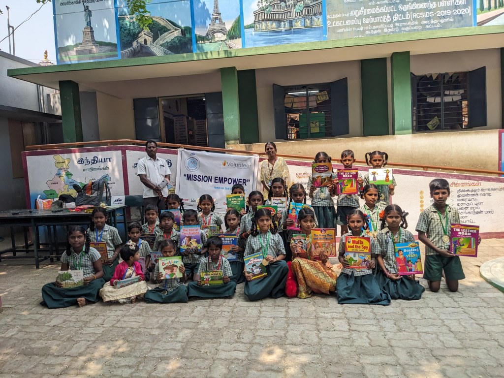 Since the first part of my project is with Spoken English, I knew I wanted to involve the children at Amarathaanoor Middle School, where I run a program. The theme ? “Thank You to the Heroines” – a chance for the kids (grades 1-5) to express gratitude to the women in their lives.