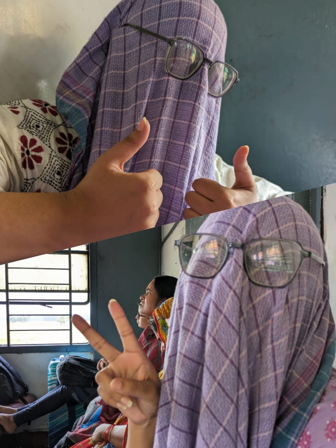 Though the train was not crowded, we sat near the window What we thought would be cool air breezing in through the windows, we were met with utter disappointment with the overwhelming presence of hot air blowing directly at our faces. In desperate times calls for desperate measures. My brain went into overdrive, and I immediately thought of a solution to combat the heat. Armed with my purple chaddar, I waited patiently for the train to stop at the next station waiting to see any sign of water taps. As soon as the train slowed down, I saw my glimmer of hope, the communal drinking water taps! I quickly sprinted out to the station submerged my chaddar in the cool water and wrung out the excess water. And just in the nick of time, the moment I set foot on the train, it departed from the station. We were able to cool down from the heat with the help of my smart thinking. Others, looking at my innovative solution, took to replicate the same. It was quite hilarious actually, but I could feel their desperation.
