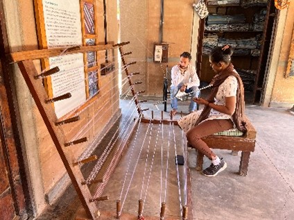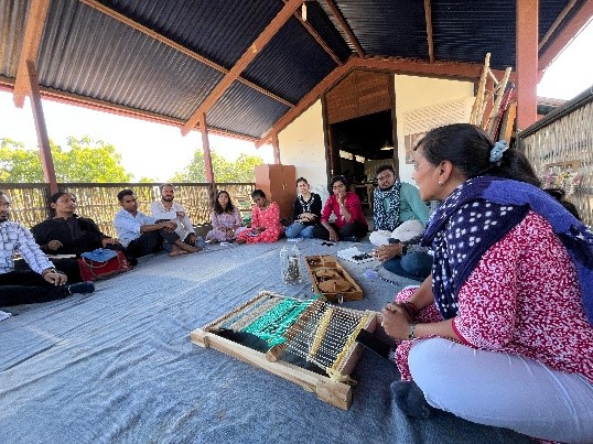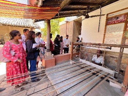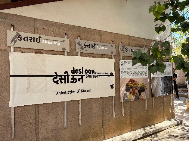 The travel workshop at Khamir officially began on the 29th of January 2025, but curiosity knows no bounds. Eager to immerse ourselves in the essence of this vibrant craft hub, my co-fellow Anusha and I, along with fellow explorers Rutuja, Manjunath, Arathi, and Nutan, began our journey on Day Zero itself. The air buzzed with creativity as we wandered through the campus, engaging in impromptu conversations with weavers, designers, shop managers, workers, and artisans. Each interaction sparked a thought—how did the traditional techniques here compare to those in our respective project locations? Were the machines there as traditional, or had they evolved with modern technology?