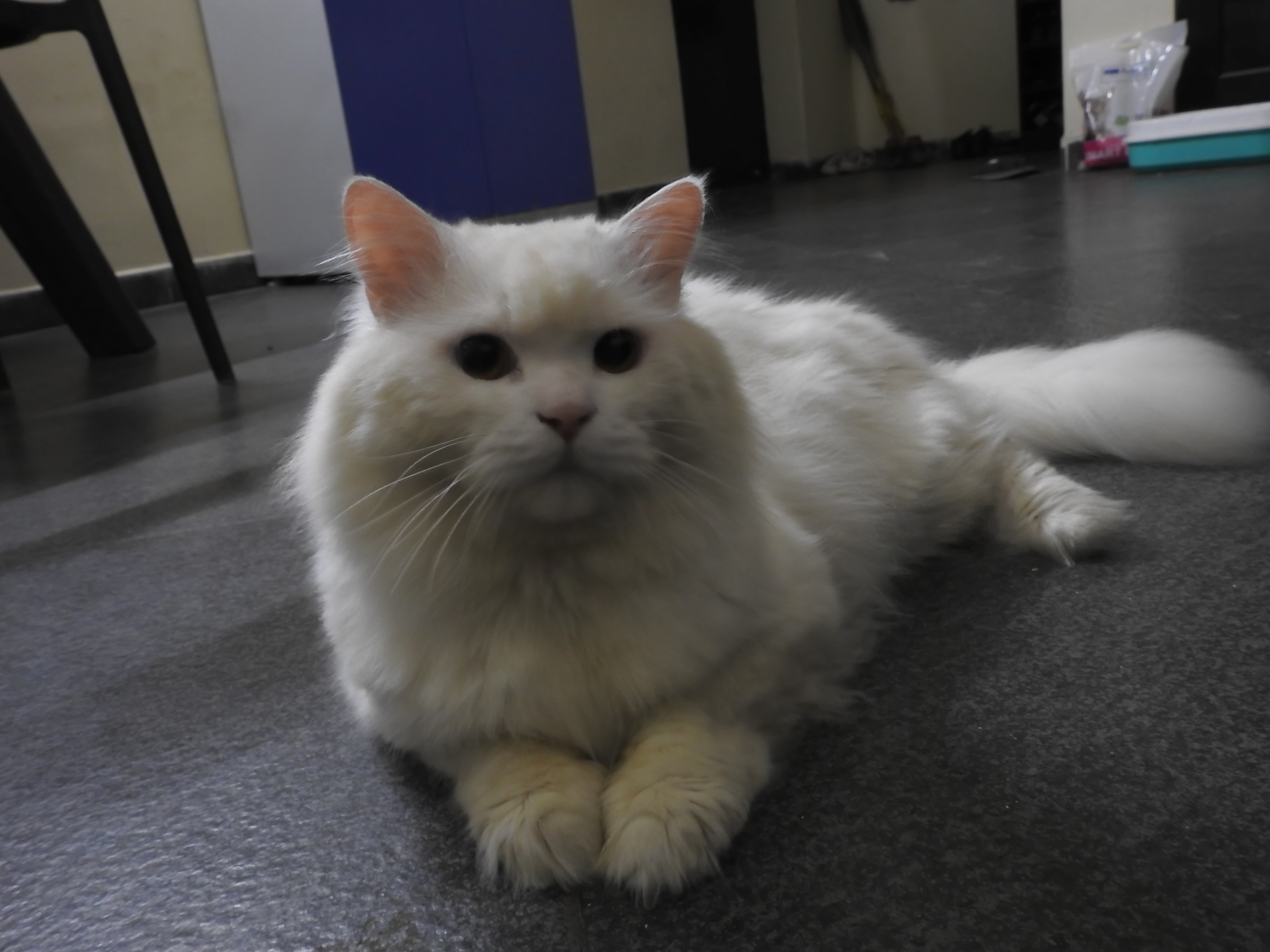 From the day I arrived in Salboni, I have been seeing the neighboring apartment cat – a sweet fluffy white Persian cat named Leo. He was always scared of me and scratched a lot while trying to hold it. So, we did not have a good relationship until I adopted a street puppy. Leo was curious to know what the new arrival was and started coming and sitting to just observe the new puppy.