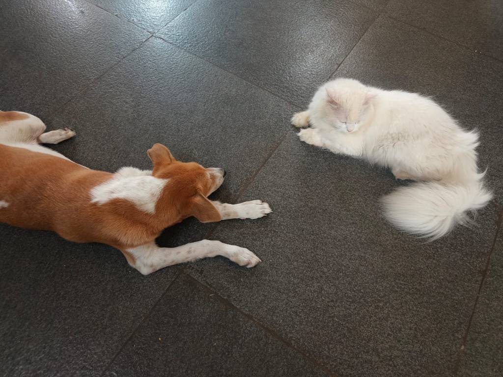 Their first interaction was hilarious. Leo, being the senior resident, decided to establish his dominance. Poor Nonte was so terrified that he squeezed himself inside a shoe rack for safety. But over time after five months, something magical happened they stopped fearing each other and started observing instead.