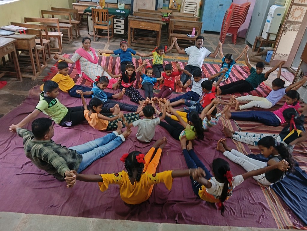 we organised a special Yoga program in my field area school . All the students and teachers took part with full energy and excitement .