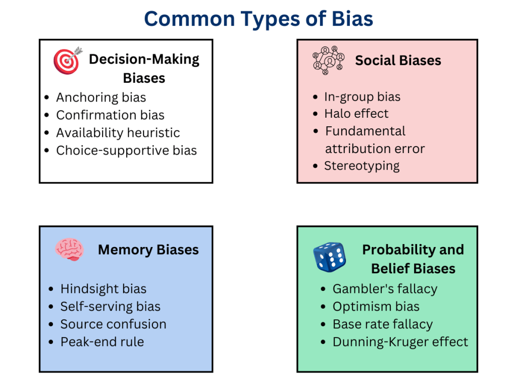 Types of Bias (Image Source and Biases List): https://www.explorepsychology.com/types-of-bias/