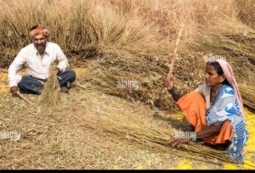 Beating the crop with sticks/mallets. (I couldn’t get an exact image but it’s almost the very same.)
