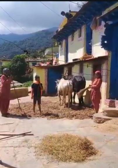- Tagging along as a factor, and perhaps a rather significant one (according to me anyway), is how labour-intensive millet farming truly is. It takes a total of 15 hours to process 50kg of Mandua and 29 hours for 50kg of Jhangora. By ‘process’ I mean converting them – all the way from harvesting the very crop itself to the last granular/pulverized stage prior to cooking. I arrived at these stats through direct conversations with women farmers within the target villages of my project. The crop is threshed using traditional cow-rotation method where the cattle are made to walk in circles on top of the gathered crops. After threshing, it is de-husked by beating/thrashing by hand using a wooden mallet-like object. This part is rather physically demanding. The next generation certainly doesn’t have such man hours or physical will to spare. The arrival/establishment of processing machinery could drastically reduce such hours – which are a major interventional aspect of my project. However, it’s safe to conclude that the labour intensity aspect definitely contributes to the overall decline.