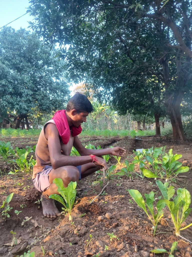In the month of June 2025, the project “Organic Vegetable Farming: Better Health, Better Income” was started as a pilot in the Faraspal Cluster. The Bhoomgadi team chose Binjam village for the pilot. The project work started properly in July when I started living in Binjam. I got the responsibility to manage the project. Initially, I had no idea how to manage it or how to change the farmers’ mindset. I also did not have enough idea about agriculture. However, day by day, I received strong support and technical knowledge from Bhoomgadi, CSA, Nirmaan Organization, and the community.