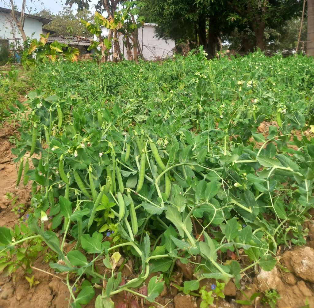 I know you love green. I know you like pollution-free open fields. So, just close your eyes and try to imagine a farmland of peas, bordered by sunflowers and banana trees. A farmer is smiling and removing weeds with family members. Is it good to see? I am sure this frame touches your heart.