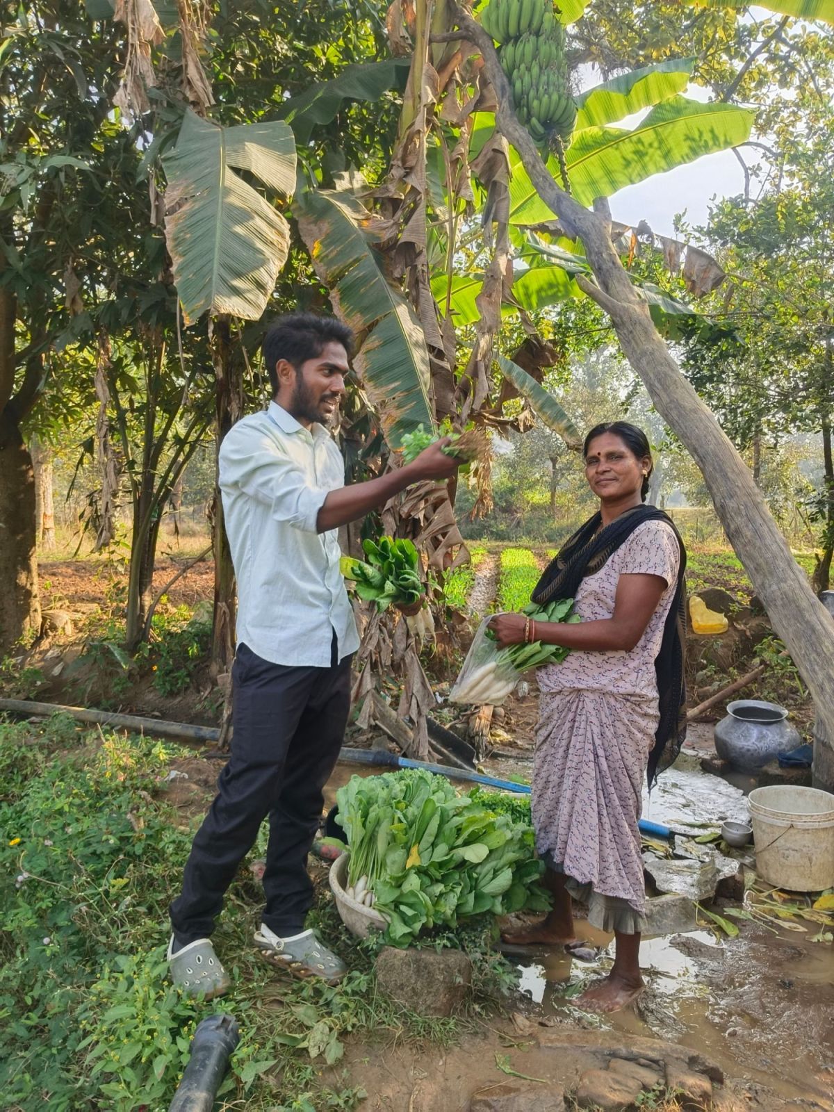 On 26th December, the Collector visited these two villages. He became satisfied after seeing the Kalpataru plots. He encouraged farmers to increase their area for year-long vegetable cultivation. He saw the white flowers of pea plants. He felt the fragrance of sunflowers. He observed the biodiversity of plants in the same plot.