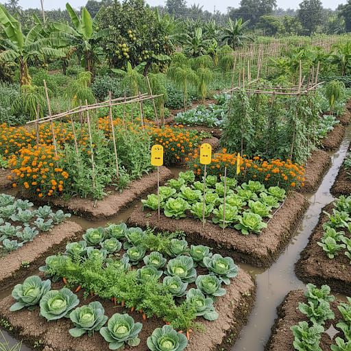 The model basically refers to multi-layer and companion farming. Even a small plot of one decimal consists of various plants. Farmers get their first harvest within one month of seed sowing. Harvesting can continue throughout the year if farmers want. That is why this model is also called the ATM model. Most of the time, the model plots are full of plants. It is not only for fruiting or flowering; it is also waiting for you.