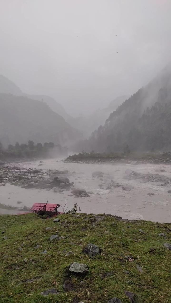 It was a small village (Devivagar) with around 7 to 8 households, located just 50 meters from the Gori Ganga River, which has a famous hot spring on its bank. As it was monsoon, the river looked beautiful from a distance but quite intimidating up close. The water was muddy, the current strong, almost like boiling water, and it felt as if different streams were competing with each other.