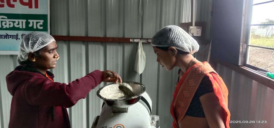 After reaching the processing unit, it was my job to arrange the place before women arrived. I and my POC need to look for the hardened pulp of the previous day, shift the pulp from hardener to cold storage. This requires me to put my hand in a temperature below freezing point. This is the tough job because it has given me few scars that help me recall those times. Once this shifting work has been done, we put all the working utensils out in the sun and clear the space for women to sit, boil water in a chulha lit by firewood, which is to be used to wash hands while doing the work. In a quantum of an hour, all this work needs to be completed, as women generally arrive in the processing unit at 10. Once they come, the empty unit suddenly gets filled with chirping voices, clinking of utensils, and sweeping sounds of broom. Amidst all, there is attentiveness in women to my voice, they clearly listened to what I had to say as I speak in hindi, different from their native language which was marathi and there