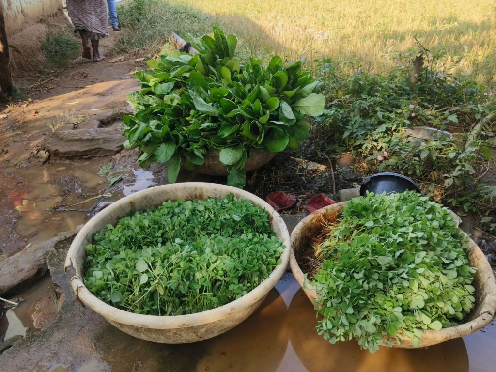 Second, not all crops mature at the same time. Some grow faster, some slower. As a result, harvesting of leafy vegetables begins within 25 days of sowing the seeds. And it is going on year-round(mains crops alnog with leafy vegetables)