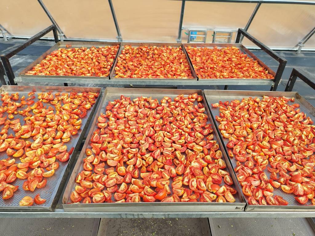 Solar dehydration enables the production of diverse value-added products such as dried tomato slices, tomato powder, chilli flakes, carrot and beetroot chips, banana and mango slices, amla pieces, and moringa leaf powder. These products cater to growing consumer demand for convenience foods and health-oriented products.