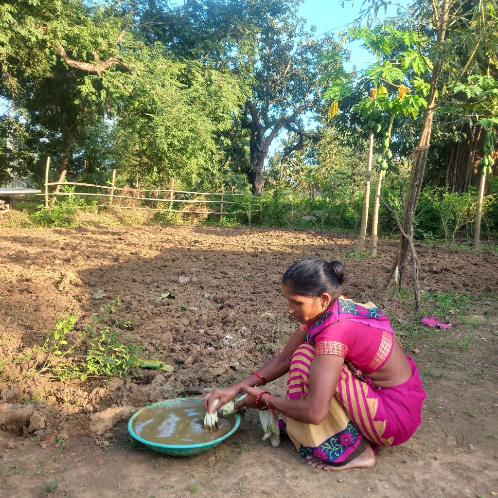 In Binjam School Para, Rajo Netam started this method on just 2 decimals of land. Around mid-January, she began preparing the land without even ploughing.