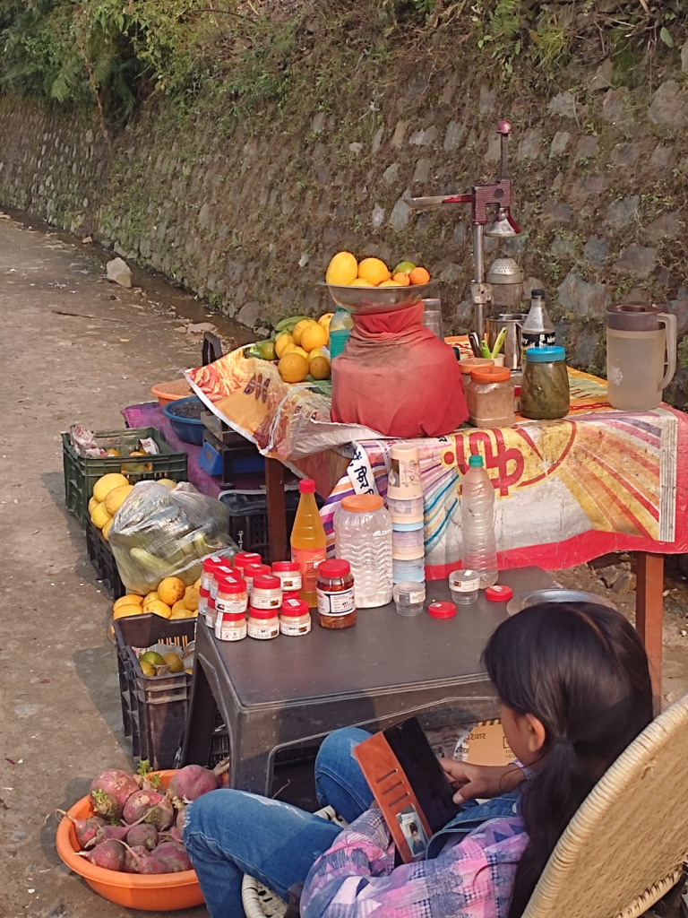 Like this lady vendor, a mother of two. Whom I met while on the way back from Haldwani to Almora, selling fruit juice along with other homemade food items near a Dhaba on the highway; she lives in the nearby village. Her line “Ya to 8 ghante ki Majdoori pe jao ya, yaha 6 ghante juice becho, mujhe yahi sahi lagta hai, apna kam apne hath”. This line showed how she found a better way rather than quitting the game, and her willingness to be her own boss. This showed me a different face of resilience, in a different story, who choose to stand for themselves and make their own way.