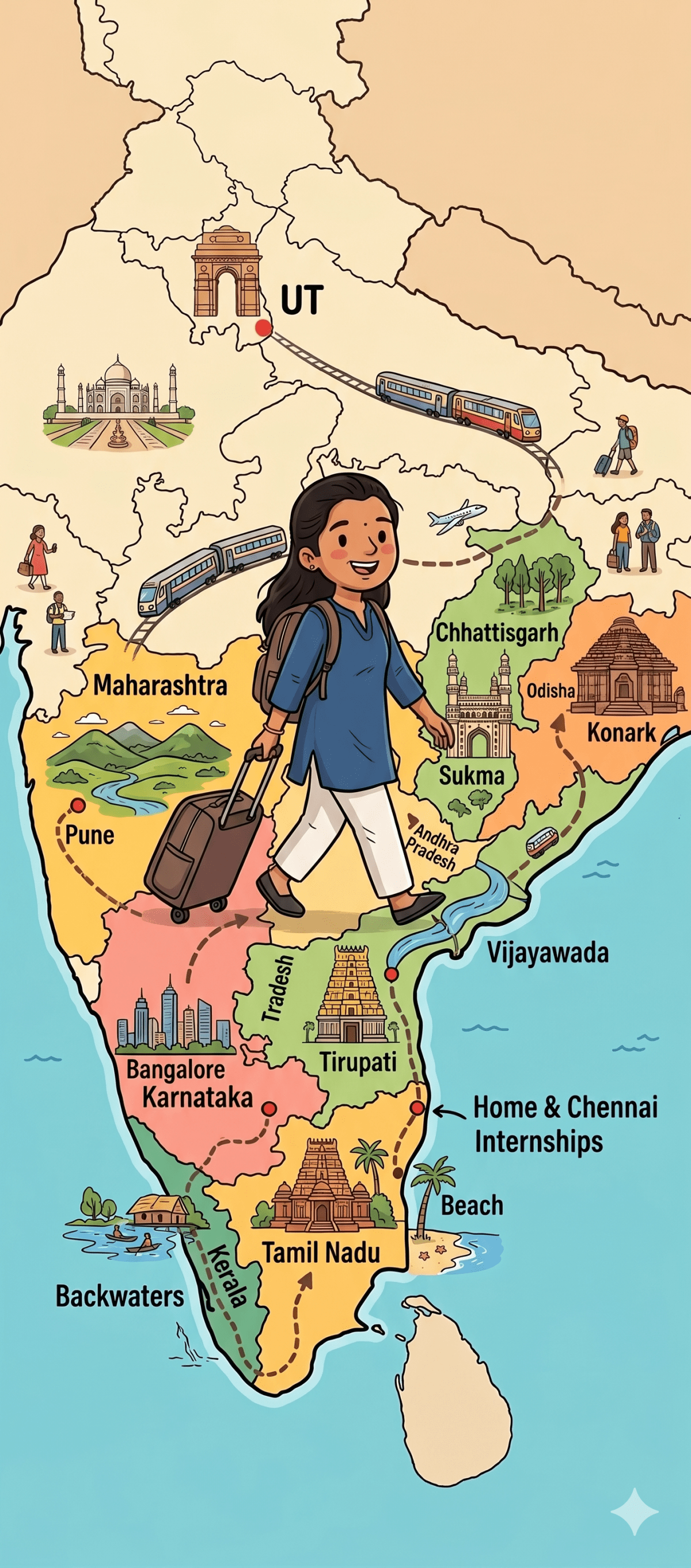 Looking back, my world moved from a few kilometers to multiple states, Tamil Nadu, Andhra Pradesh, Kerala, Karnataka, Maharashtra, Chhattisgarh, Odisha, and Telangana, all within one year. Not because I planned it that way, but because I said yes to opportunities and handled things as they came.